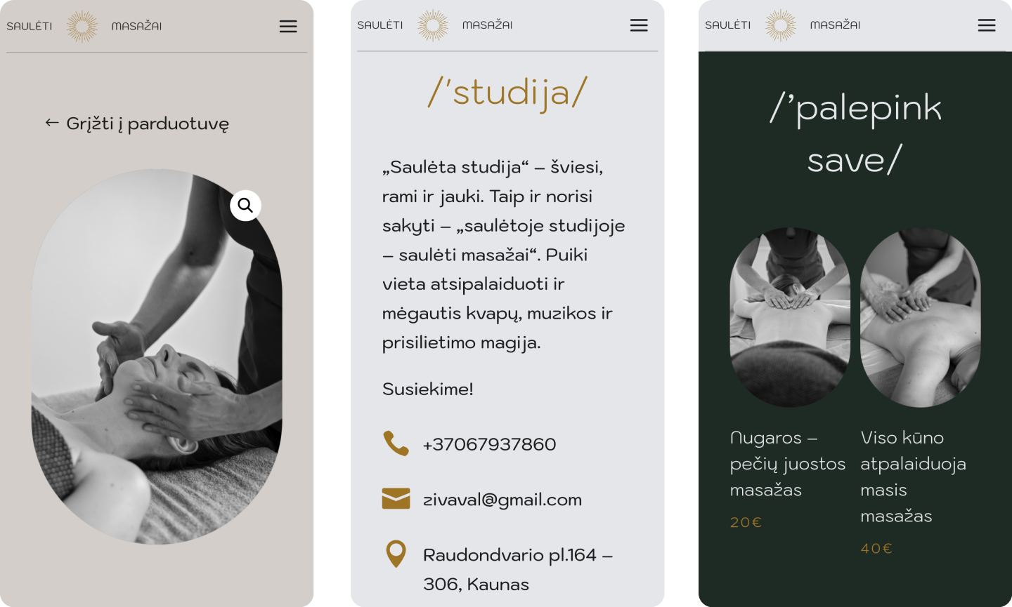 Saulėti Masažai is a project aimed to create a website and eCommerce platform for a Kaunas-based massage studio specializing in Japanese Kobido, full-body, localized, and pregnancy massages.